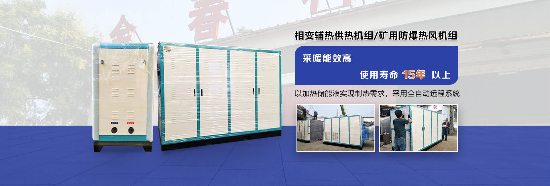 本公司專業生產相變輔熱供熱機組、礦用防爆熱風機組,可代替燃煤、燃油、燃氣鍋爐,運行成本低,具有加熱快、熱效率高、便于操作,節能環保等特點,是新一代理想的環保節能產品。